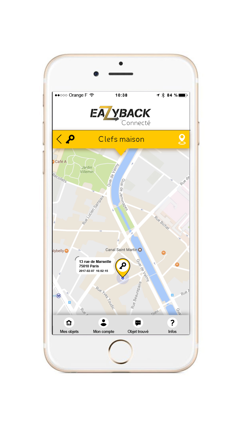 Accrochez le tracker à l'objet de votre choix, et téléchargez l'application EazyBack !