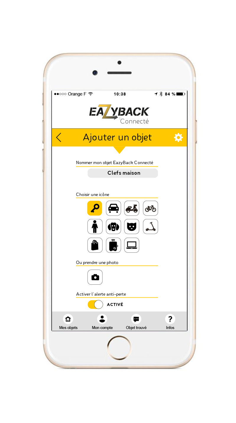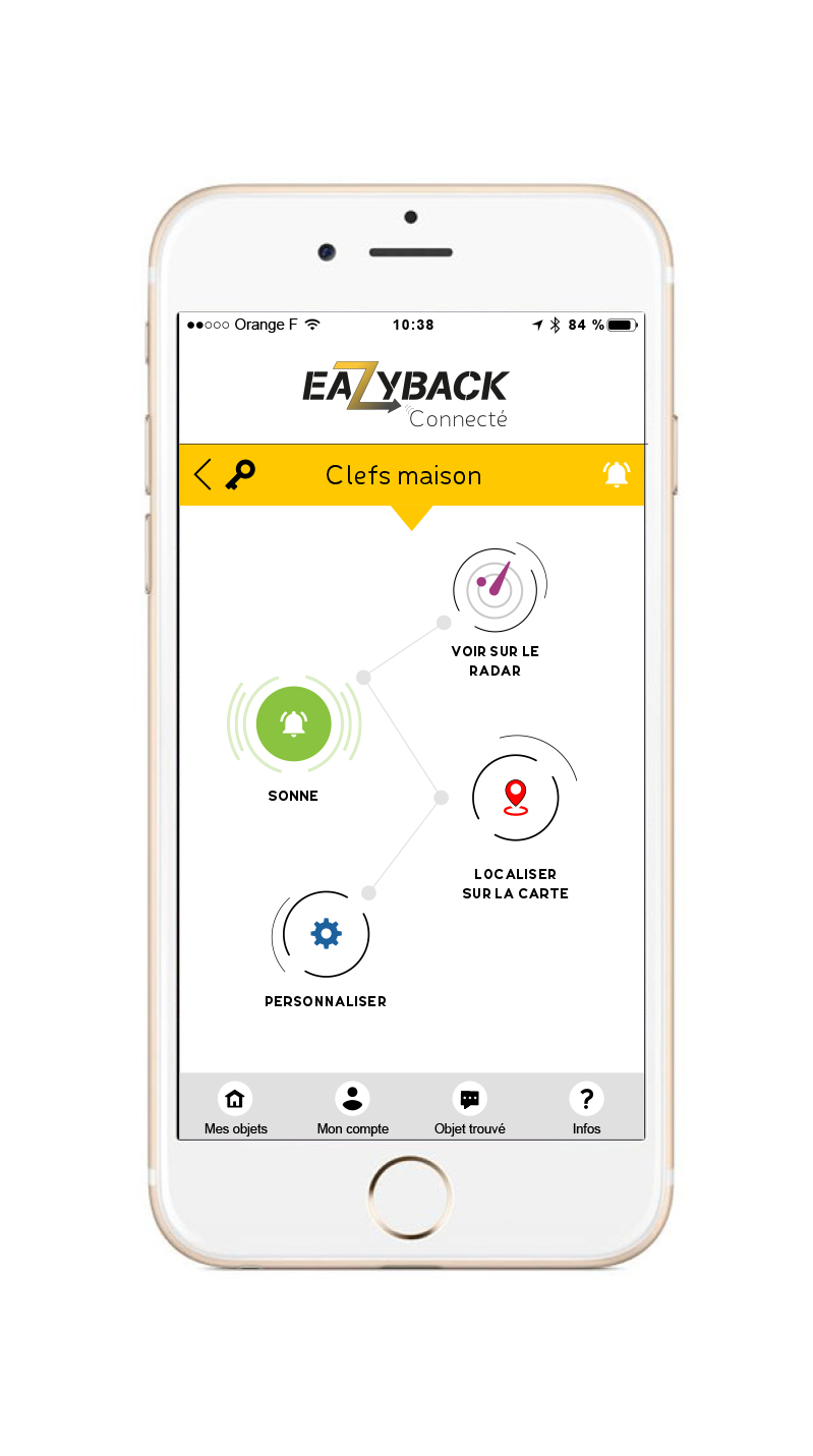 Accrochez le tracker à l'objet de votre choix, et téléchargez l'application EazyBack !
